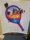Personalized Custom Airbrush Tennis Theme T-Shirt with Sunset Scene