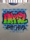 Airbrushed T-Shirt, Neon Ombre block letters, Personalized airbrush graffiti shirt